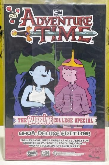 It’s . . . ALTERNATE UNIVERSE TIME! From the mind of Eisner Award winning cartoonist Caroline Cash (PeePee PooPoo), experience all the fun of college (and none of the stress) in this giant-sized spectacular starring Princess Bubblegum and Marceline! What, do you think Ice King should get to have all the fun?! Heck nah! Fanfics are cool and all, but you know what’s even cooler? Peering into alternate universes―and Prismo’s got the perfect one in mind . . . Princess Bubblegum has just started school at Ooo University (double majoring in chemistry and princess, of course!). But between difficult roommates, overreaching bodyguards, assassination attempts, and―more importantly―a full class schedule, will Bubblegum be able to survive her first year in college?! With the help of one super-cool, super-mysterious flying vampire who she is mayybeee falling in love with, it shouldn’t be all that hard. Turns out Marceline and Bubblegum are made for each other in any universe!